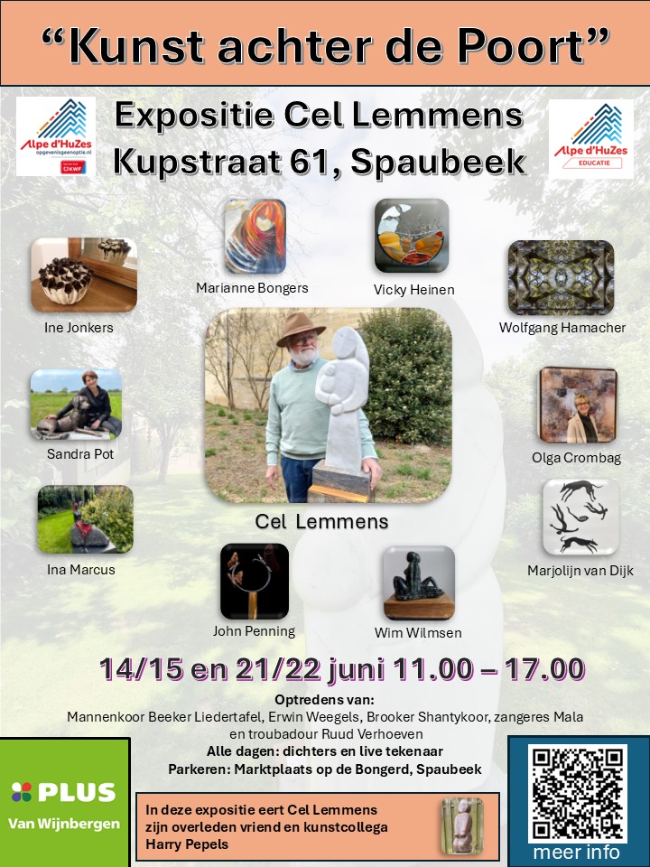 Aankomende concerten zo22jun2025 Kunst Expositie Cel Lemmens 14:00 - 15:00 uur In de tuin van Cel Lemmens aan de Kupstraat 61 te Spaubeek.